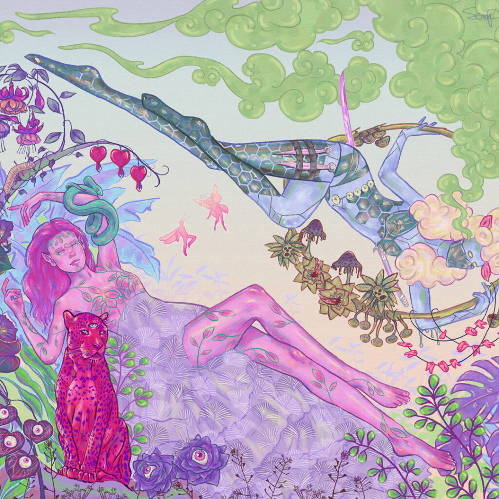 “As a multidisciplinary artist and designer, my practice lies at the intersection of mythological narratives and personal memory. By merging traditional painting techniques with digital art and illustration, I explore cycles, balance, and transformation between nature and humanity. My aim is to invite viewers into the layered worlds of each work, encouraging them to engage in a dialogue with both their inner landscapes and our collective memory through visual storytelling. This hybrid approach allows my works to unfold not only on canvas but also across a wide spectrum, ranging from design to bespoke projects.”