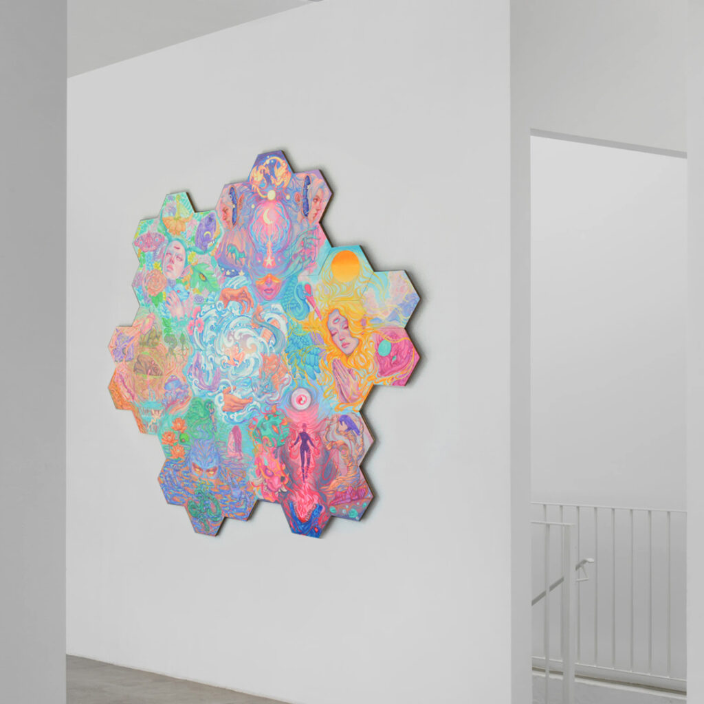 Patented HEGXIE® to define a new concept of canvas that allows modular and flexible artwork installation.